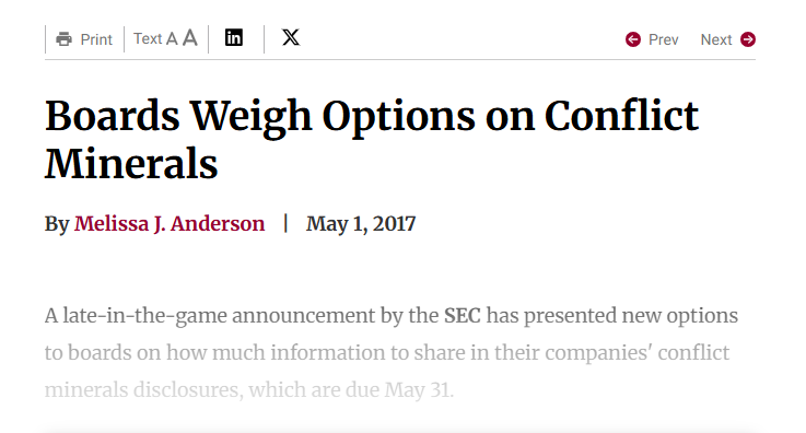 Boards Weigh Options on Conflict Minerals- Agenda- May 2017