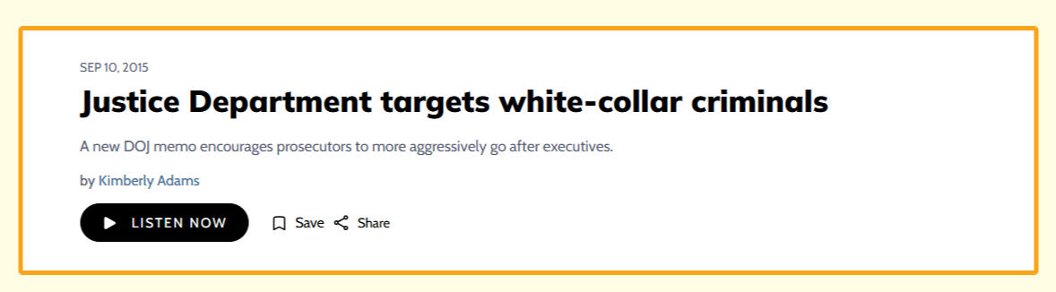 Justice Department targets white-collar criminals- - NPR Marketplace Morning Edition 2015