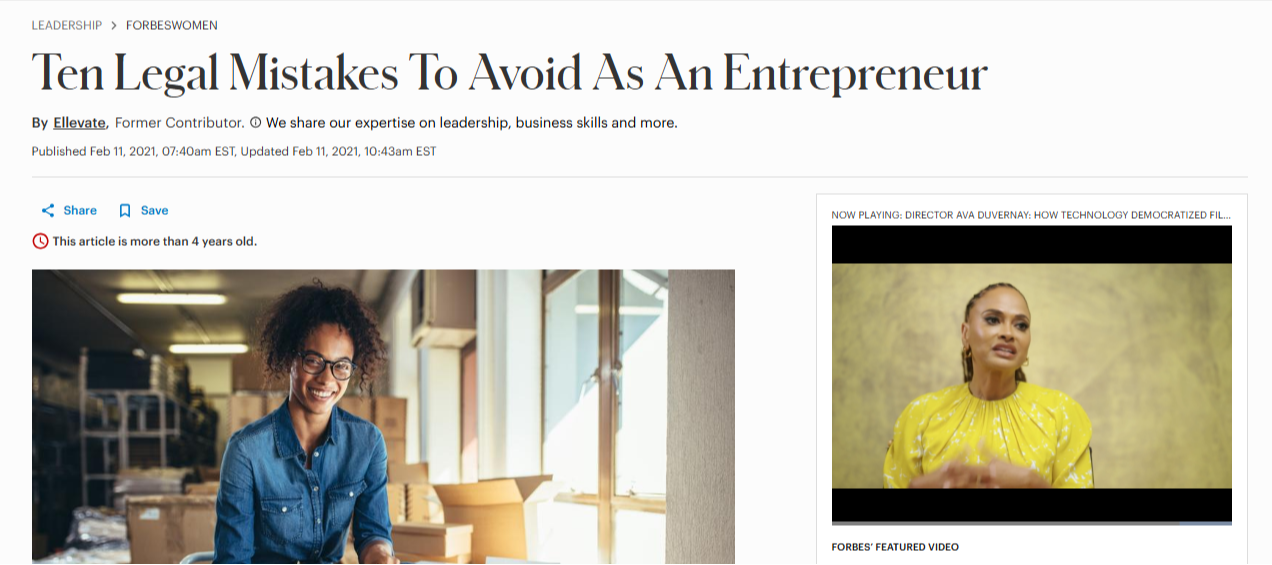 Ten Legal Mistakes To Avoid As An Entrepreneur- Forbes 2/11/21