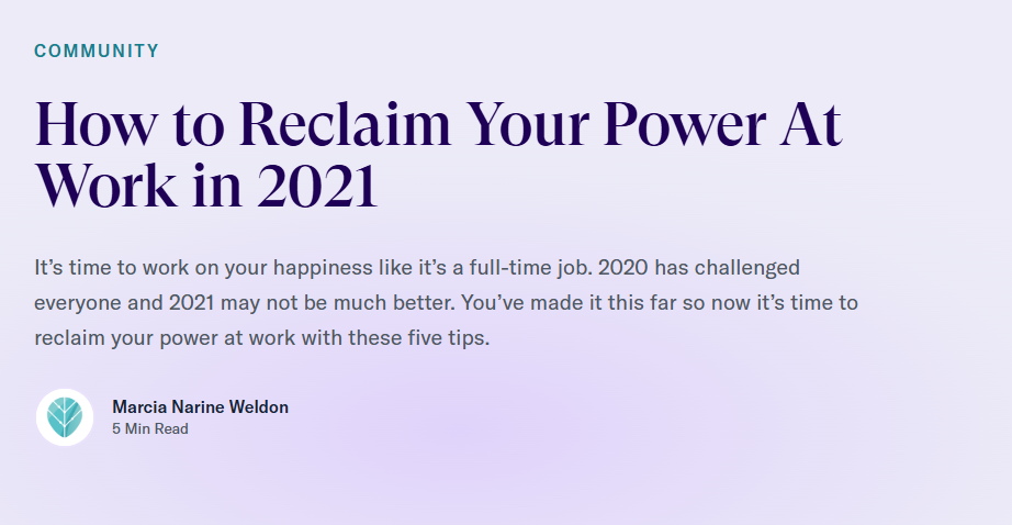 How to Reclaim Your Power at Work in 2021- Thrive Global December 2020