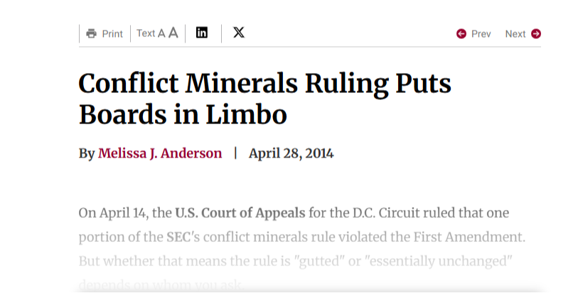Conflict Minerals Ruling Puts Boards in Limbo Agenda 4/28/14