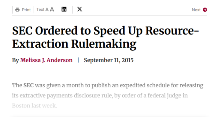 SEC Ordered to Speed Up Resource-Extraction Rulemaking 9/11/15- Agenda