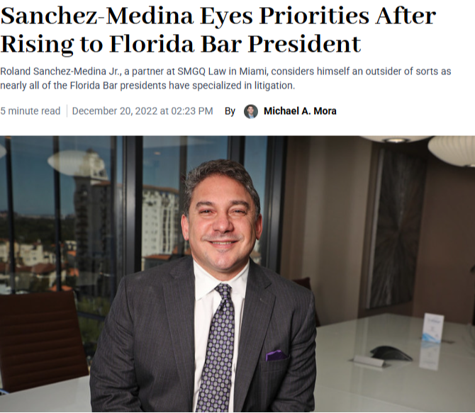 Sanchez-Medina Eyes Priorities After Rising to Florida Bar President- Daily Business Review- 12/20/22