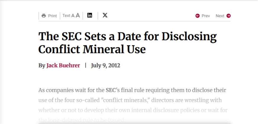 The SEC Sets a Date for Disclosing Conflict Mineral Use- Agenda 7/9/12