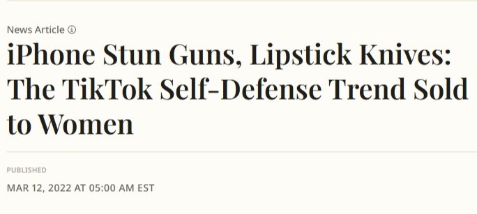 iPhone Stun Guns, Lipstick Knives: The TikTok Self-Defense Trend Sold to Women - Newsweek- 3/12/22