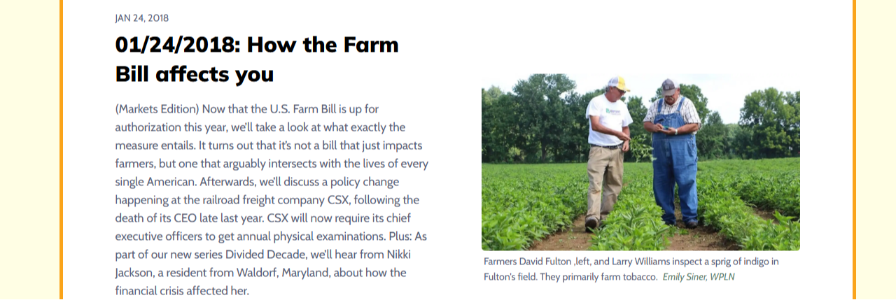 How the Farm Bill Affects You. NPR Marketplace Morning Edition 1/24/18