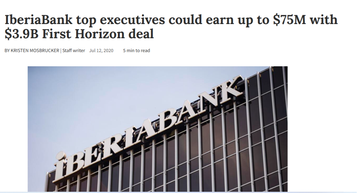 IberiaBank top executives could earn up to $75M with $3.9B First Horizon deal | Business | theadvocate.com 7/20