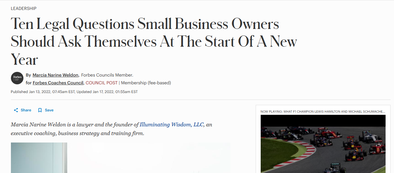Ten Legal Questions Small Business Owners Should Ask Themselves At The Start Of A New Year- Forbes 1/22